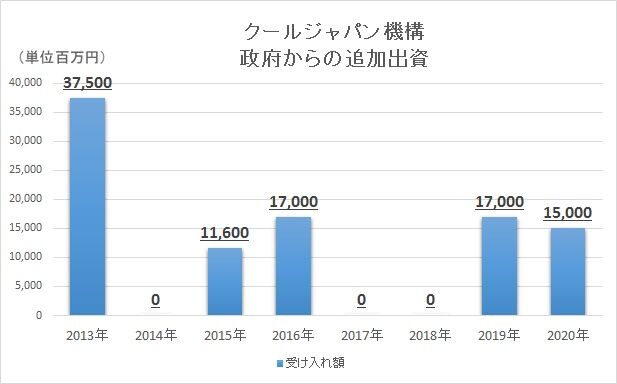 クールジャパン機構の設立は2013年。官民ファンドと自称しているが、財務大臣が8割もの株をもつ、実質政府系企業だ。出資金のほとんどが政府のものですし、その後の追加出資もほとんど政府から出ています。