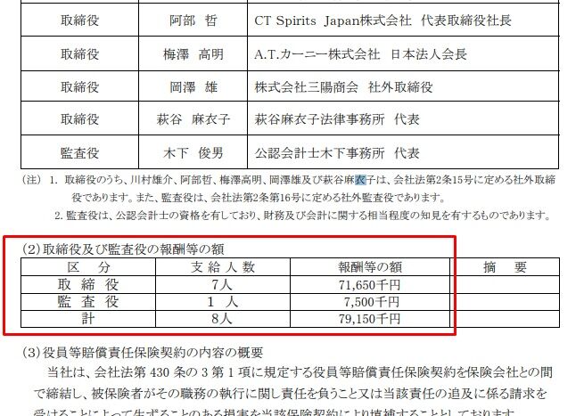 これ見て思ったのですが、これら取締役、非常勤なのだろうか。非常勤でこの給料は、泥棒どころの話ではないですよ。