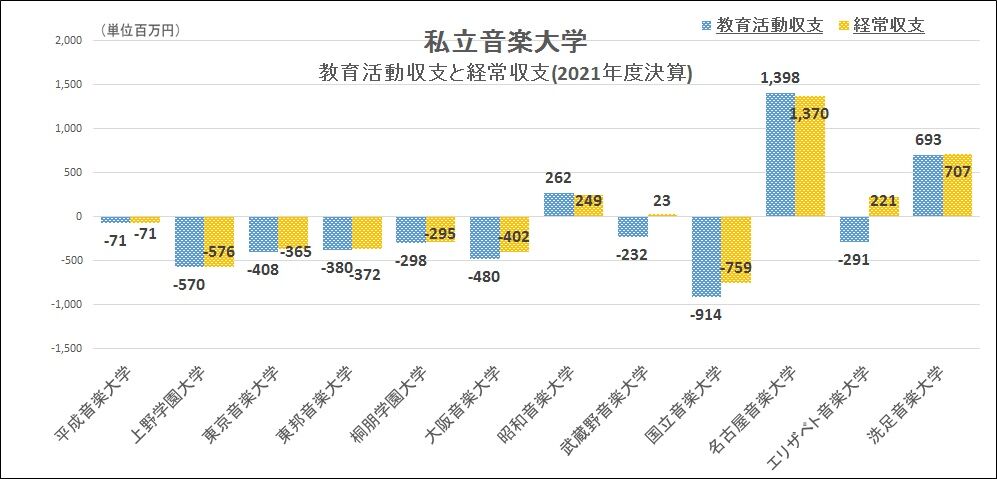 【悲報】日本の私立音大、12大学中、9大学が教育活動収支で赤字。