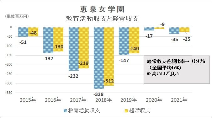 まずは収支。教育活動収支(本業収支)と経常収支(利息等+本業収支)は7年連続赤字。2016年~2018年度が特にキツい。一体、何があったのか。