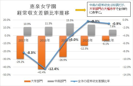 関係者の間では歴史ある学園の募集停止に驚きの声が多くあがっている。だが、この問題は中堅未満の大学には皆起こりうる現象である。とりわけ、中堅未満大学の定員割れによる財務面のダメージは大きい。恵泉はどうだったのか。財務面を見ていく。