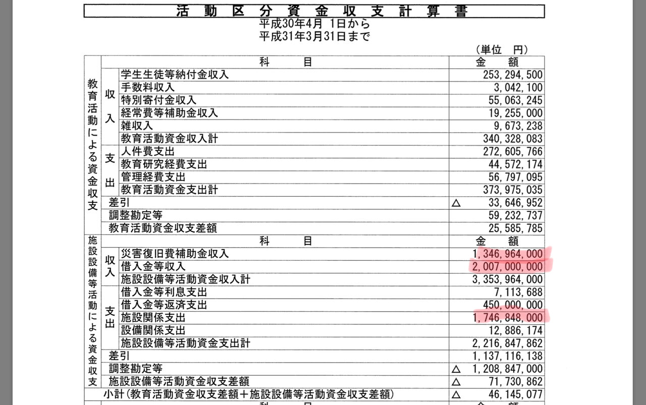 同大学の運用資産は3億円程度なので、これは本当に大きい収入だった。まず自力では復興できない。それくらい、自然災害による補助金というのは死活問題なのだ。